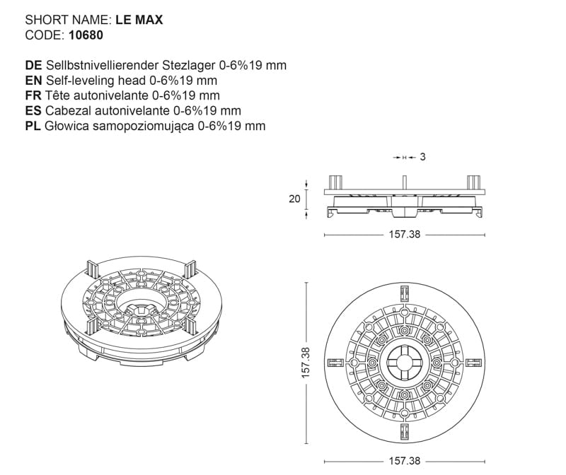 Głowica samopoziomująca do wsporników tarasowych LE MAX 6% | DD Group