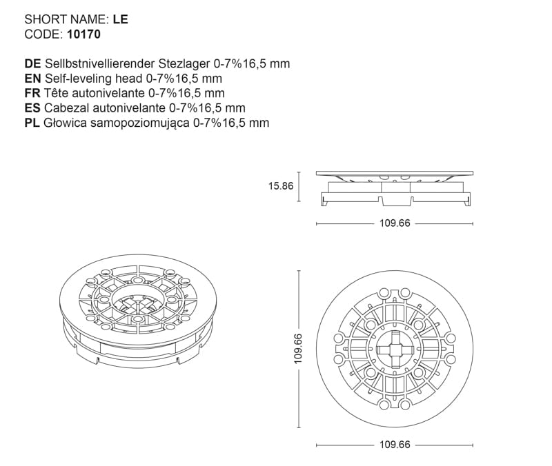 Głowica samopoziomująca do wsporników tarasowych LE 7% | DD Group