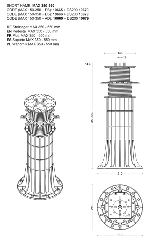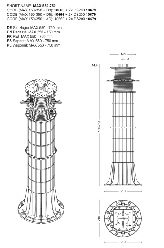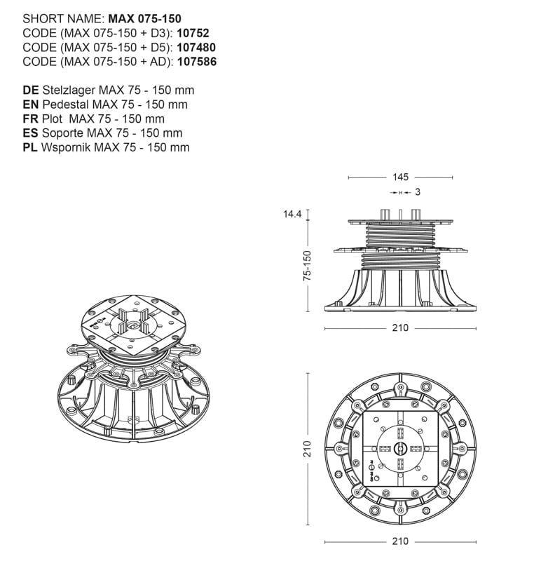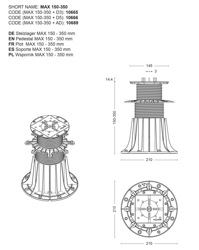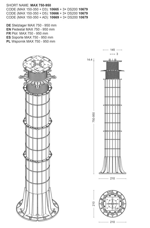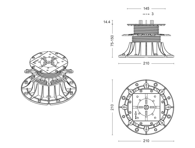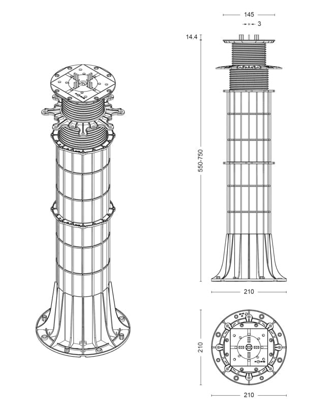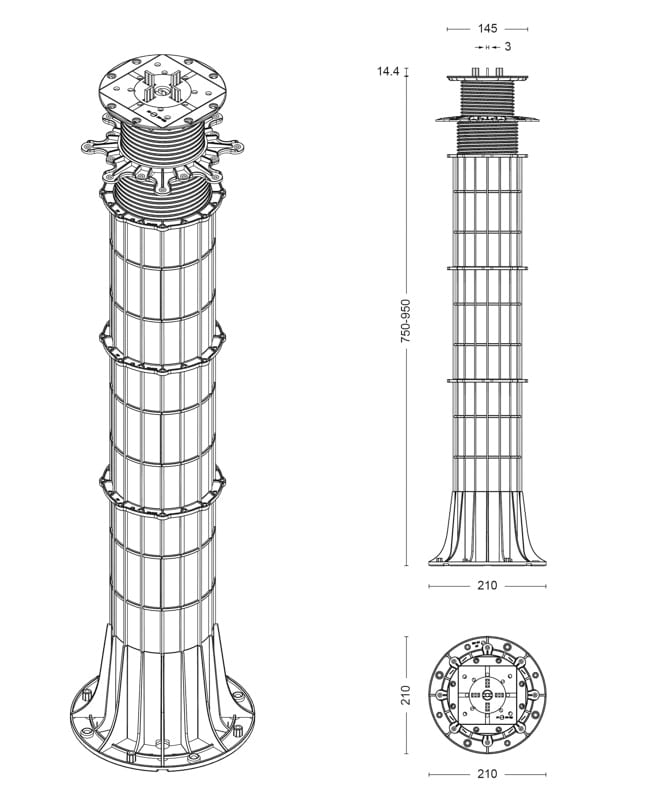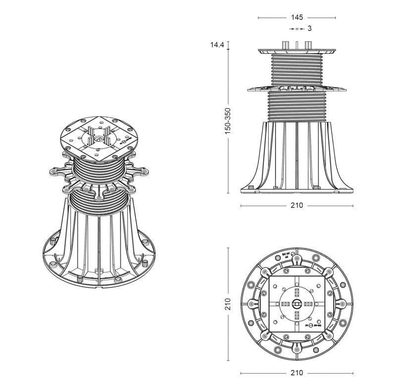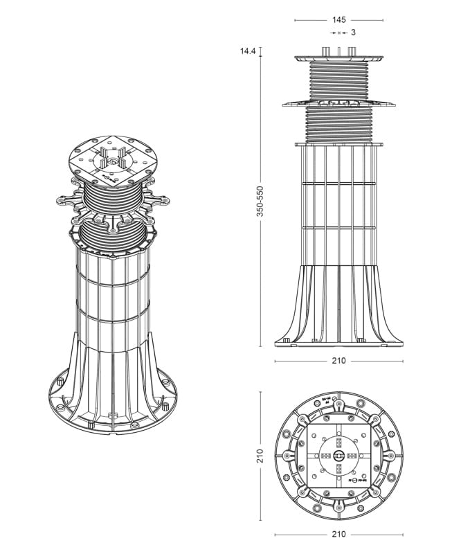 Regulowany wspornik tarasowy SPIRAL 130-150mm | DD Group