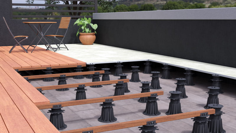 Regulowane wsporniki tarasowe pod legary