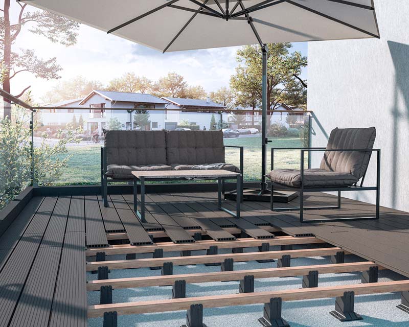 Regulowane wsporniki tarasowe pod legary